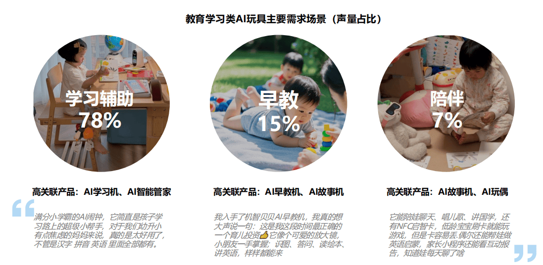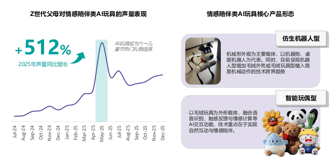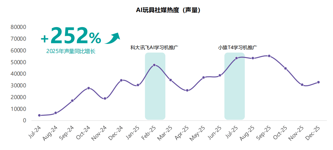 教育进修类占领Z世代父母,此中,AI玩具社媒声量于2025年送来迸发,
